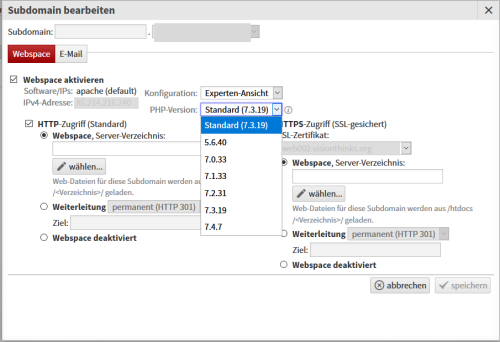von der aktuellen Apache-, nginx- oder PHP-Version des ausführenden